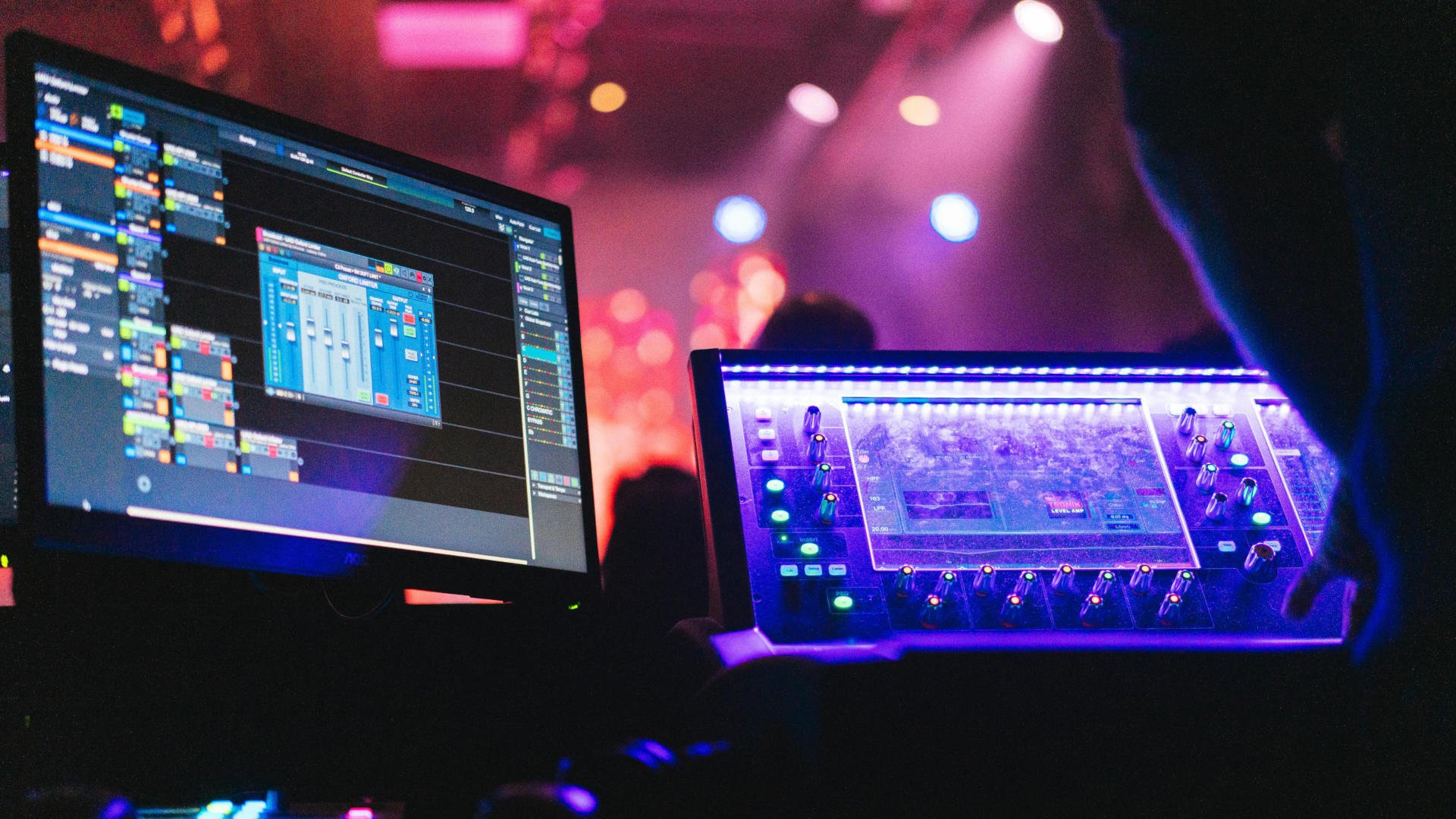 Ob kleine Feier, Firmenveranstaltung oder großer Gala Abend. Wir sorgen dafür, dass Ihr Event technisch perfekt umgesetzt wird. Von stimmungsvoller Ambientebeleuchtung über Messeausstattung bis zur Betreuung von Bands liefern wir die passende Licht und Tontechnik für jede Situation.